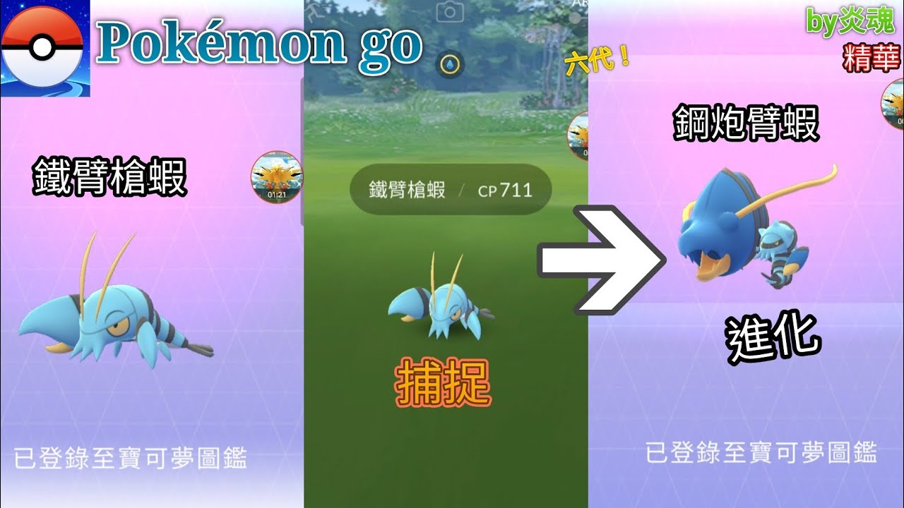 Pokemon Go 捕捉新寶可夢 鐵臂槍蝦 並進化到鋼炮臂蝦 By炎魂 Youtube